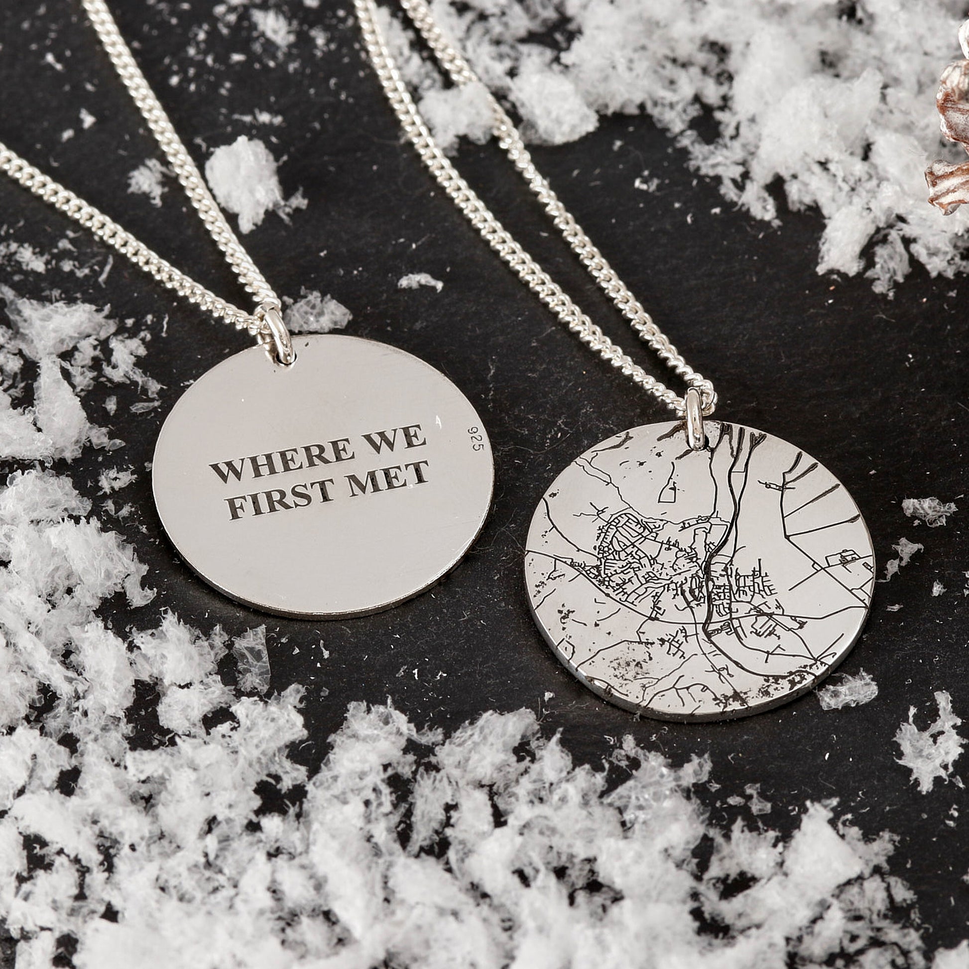 Your custom map necklace has a unique abstract look, each one is custom made in our Brighton workshop based on your chosen address, city or co-ordinates. It could be where you grew up, where you met your partner, your first home together, the place you got married in, or just somewhere in the world where you left your heart.