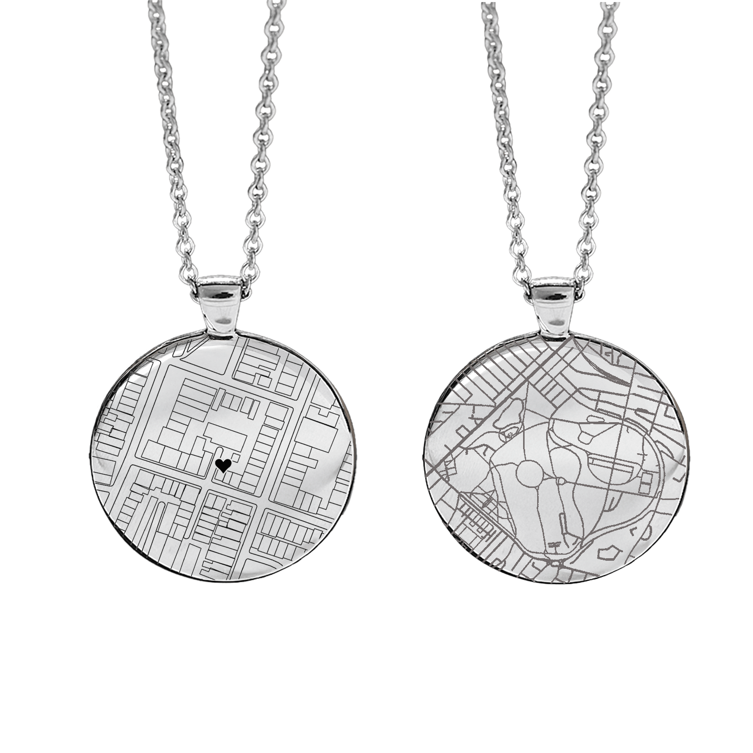 Your custom location or street map transformed into a premium cast silver pendant - a treasured keepsake that keeps a special place close to your heart with sophisticated elegance.